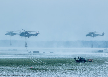 The weather conditions provided the participants with extra challenges as it had snowed the days previous to the exercise. |It offered the helicopters the opportunity to fly whiteout landings creating a white scenery for the riggers and spectators.